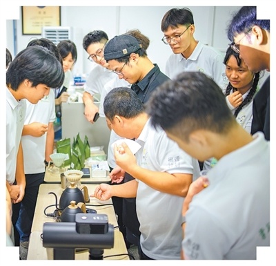 广州市“乡村运营青年CEO培育·蜜蜂计划”培训班学员学习冲煮咖啡。共青团广州市委供图
